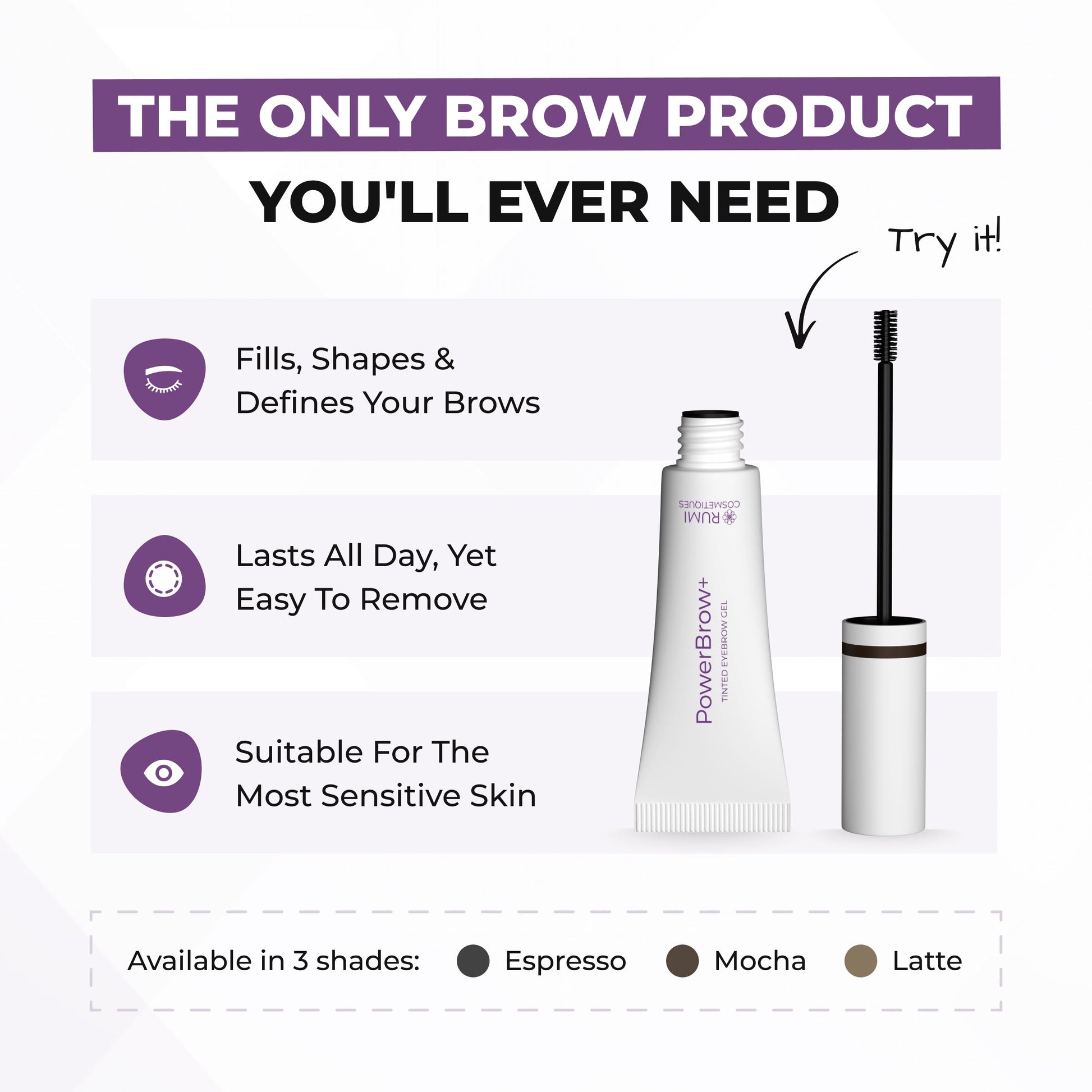 Elevate your everyday look with PowerBrow+ Tinted Eyebrow Gel.